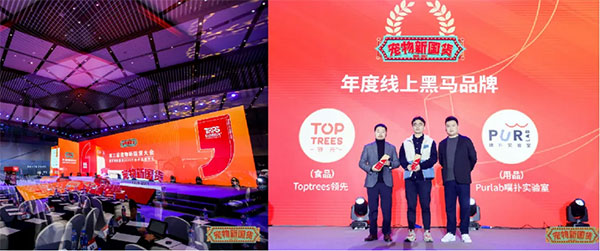 现在,抖音、小红书、微信、微博等主流平台上,Toptrees领先的整体曝光5亿+,笼罩线上养宠用户1亿+,是小红书宠粮种草指数TOP1品牌,并入选2020天猫宠物618新锐品牌TOP2、双11新锐品牌TOP1,宠物新国货大会“年度线上黑马品牌”等多项声誉榜单。
