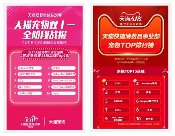 天猫宠物 618新锐品牌TOP2、双11新锐品牌TOP1
